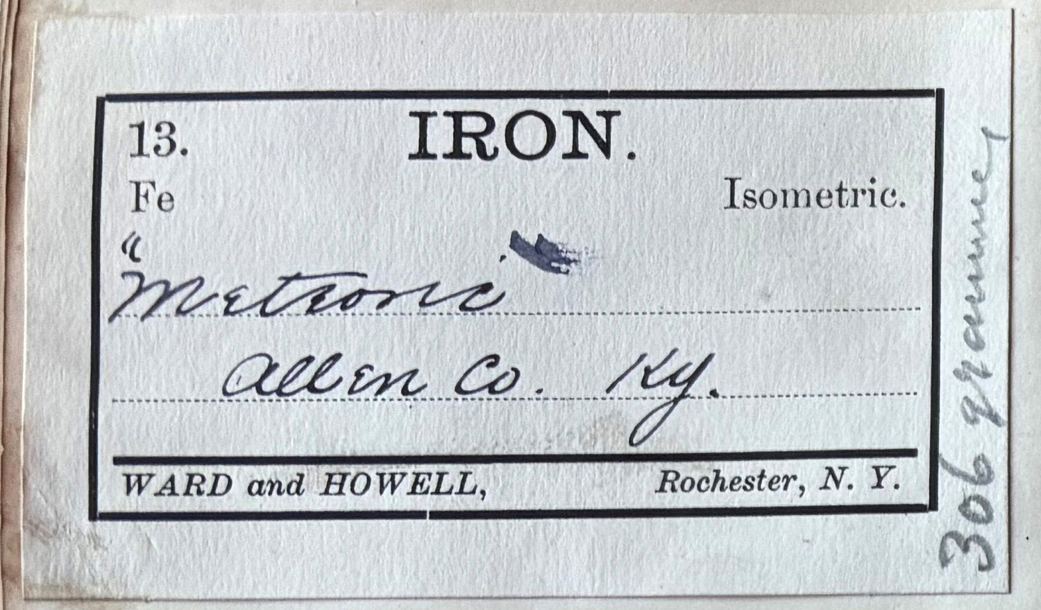Meteorite Scottsville. Label Ward (& Howell) (collection: James R. Gregory; © Jarkko Kettunen).