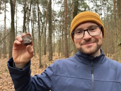 Pierwszy dzień „Poszukiwań meteorytu Pułtusk 2024” za nami. Po miłym spotkaniu rano poszukiwacze rozeszli się po lesie we wszystkich kierunkach. Do wieczora znaleziono przynajmniej trzy meteoryty Pułtusk! Janusz Kosmowski rano znalazł okaz o wadze 70,7 g! Konrad Łęcki po południu znalazł okaz o wadze 48,2 g! Szymon Kozłowski przed zmrokiem znalazł okaz o wadze 40,7 g! |
