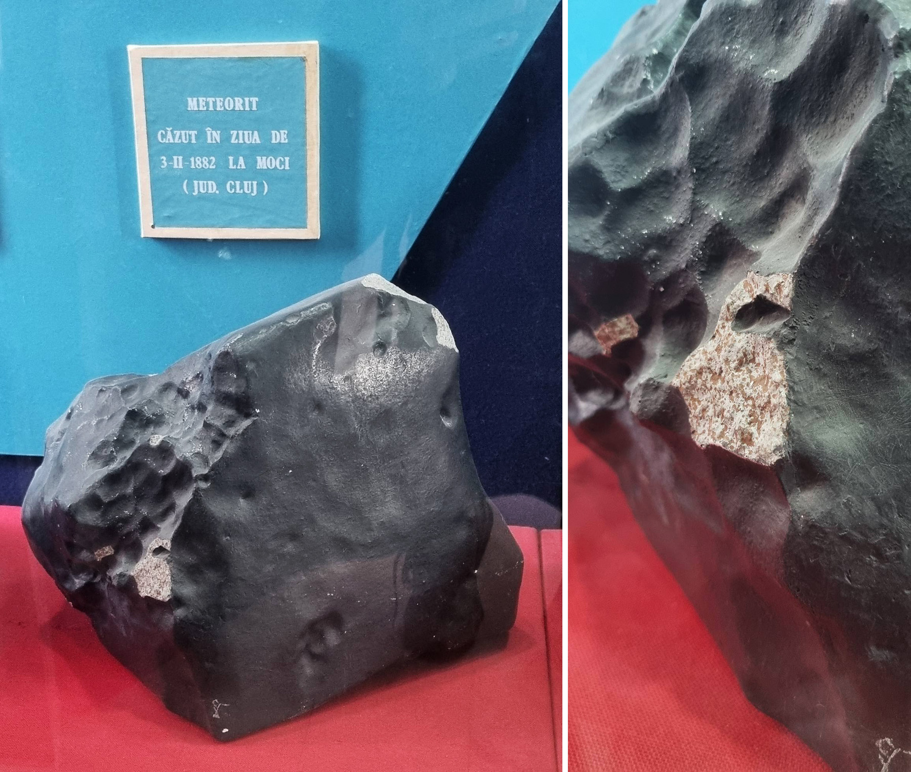 Meteoryt [[Mocs]], kolekcja ''National Museum of Geology in Bucharest'' (fot. Dan Vladoiu; źródło: [https://www.facebook.com/share/p/1BH8ns4KDe/ FB]).