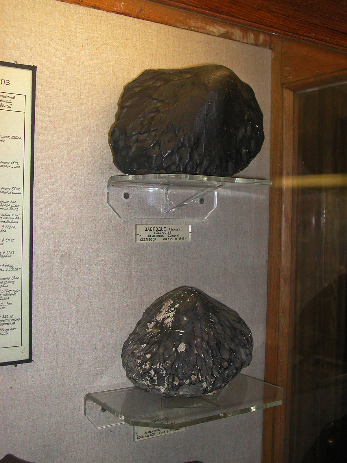 Zabrodje and Karakol meteorites; Russian Academy of Sciences, Fersman Mineralogical Museum, Moscow (Moscow 2004; photo: Wadi & Jan Woreczko).